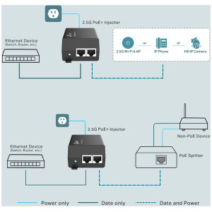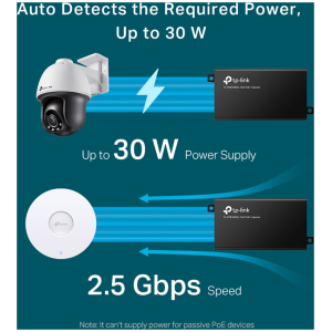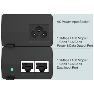 Το 2.5G PoE+ Injector TL-POE260S συμμορφώνεται πλήρως με το πρότυπο IEEE 802.3af/at, επιτρέποντας σας να επεκτείνετε το δίκτυό σας όπου δεν υπάρχει ρεύμα ή πρίζα. Μπορεί να χρησιμοποιηθεί με access points, IP κάμερες, IP τηλεφωνά κ.λπ.