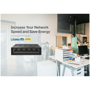 Αυξήστε την ταχύτητα του δικτύου σας με το 5-port desktop switch LS1005G. Οι 5x Gigabit θύρες με ταχύτητες 10/100/1000Mbps επιτρέπουν την άμεση μεταφορά μεγάλων, εντάσεων εύρους ζώνης αρχείων χωρίς παρεμβολές.