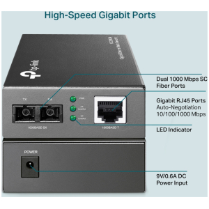 Επιπλέον, επεκτείνει την απόσταση ινών έως και 0.55km για multi-mode ίνα. Προσφέρει δυνατότητα χρήσης ως stand alone συσκευή ή με το Rackmount Chassis TL-MC1400 της TP-LINK.