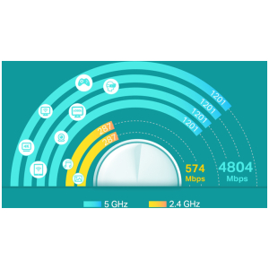-WiFi Speeds: AX5400 / 5 GHz: 4804 Mbps (802.11ax), 2.4 GHz: 574 Mbps (802.11ax)