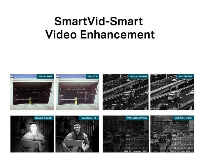 -Έξυπνη βελτίωση βίντεο: Οι τεχνολογίες επαγγελματικών προδιαγραφών όπως Smart IR, WDR, 3D DNR και Night Vision της VIGI, επεξεργάζονται το βίντεο για να βελτιώσουν σημαντικά την ποιότητά του.