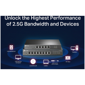 Το TL-SG108-M2 είναι ένα switch 8 θυρών 2.5-Gigabit, που προσφέρουν εξαιρετικά γρήγορες συνδέσεις με switching capacity έως και 40 Gbps.