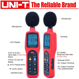 Το ψηφιακό ντεσιμπελόμετρο UT352 της UNI-T διαθέτει λειτουργία αυτόματης εμβέλειας και αποθήκευσης δεδομένων, με συναγερμό high και lower, αναλογικές εξόδους και μικρόφωνο συμπυκνωτή.