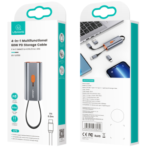 Πολυλειτουργικός αντάπτορας για φόρτιση και μεταφορά δεδομένων της Usams, με υποστήριξη γρήγορης φόρτισης PD, με απόδοση έως 60W.