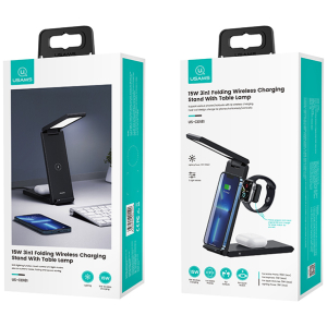 USAMS ασύρματος φορτιστής US-CD181 με φωτιστικό, 3 σε 1, 15W, μαύρος