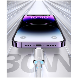 Καλώδιο φόρτισης και μεταφοράς δεδομένων Lightning σε USB-C της Usams. Υποστηρίζει φόρτιση με απόδοση έως 30W και μεταφορά δεδομένων με ταχύτητα έως 480Mbps.