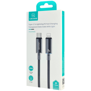 USAMS καλώδιο Lightning σε USB-C US-SJ659, 30W, 480Mbps, 1.2m, μαύρο