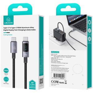 Καλώδιο φόρτισης και μεταφοράς δεδομένων USB-C σε USB-C της Usams. Υποστηρίζει φόρτιση με απόδοση έως 100W και μεταφορά δεδομένων με ταχύτητα έως 480Mbps.
