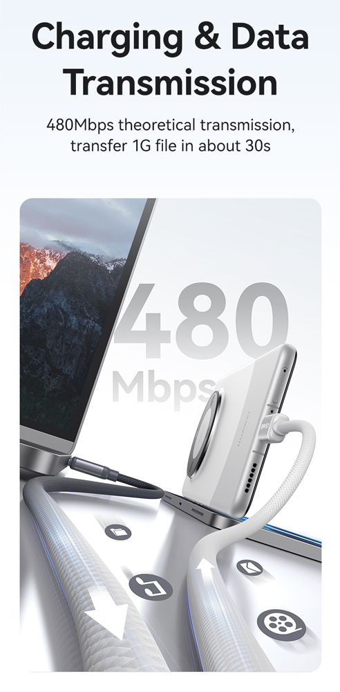 Καλώδιο φόρτισης και μεταφοράς δεδομένων USB-C σε USB-C της Usams. Υποστηρίζει φόρτιση με απόδοση έως 60W και μεταφορά δεδομένων με ταχύτητα έως 480Mbps.