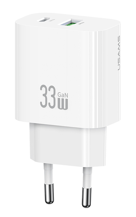 USAMS φορτιστής τοίχου CC317, USB & USB-C, 33W, GaN, λευκός