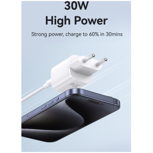 USAMS φορτιστής τοίχου US-CC251, USB-C, 30W, GaN, λευκός