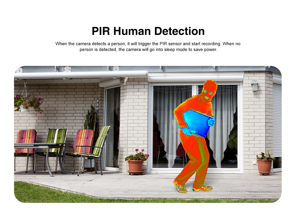 -Alarm detection: Support human detection, PIR detection range: 10 meters