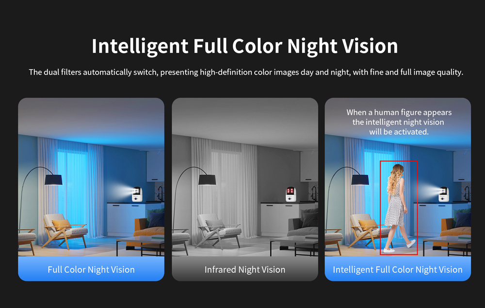 -Night vision: Black and white night vision, full-color night vision